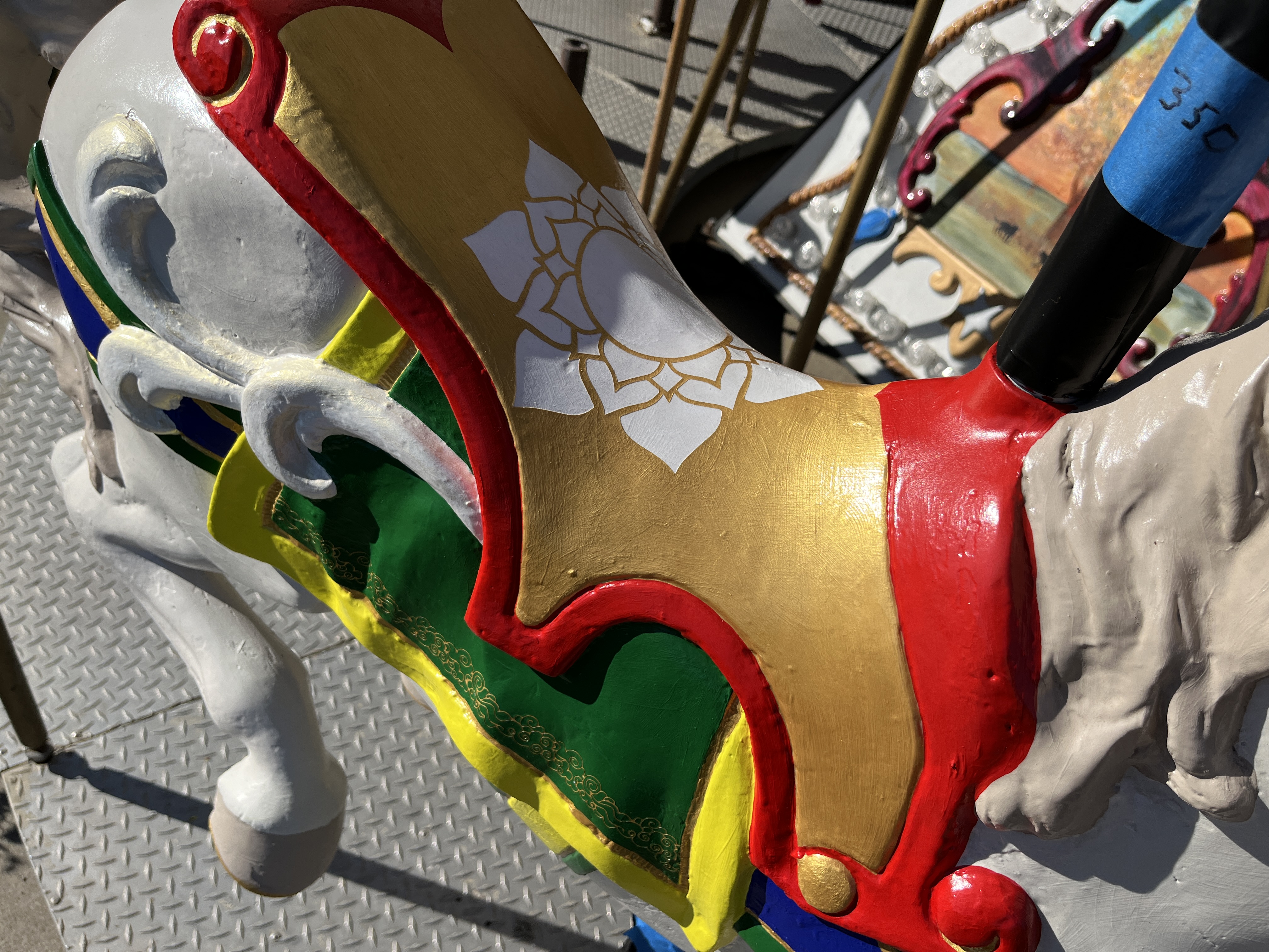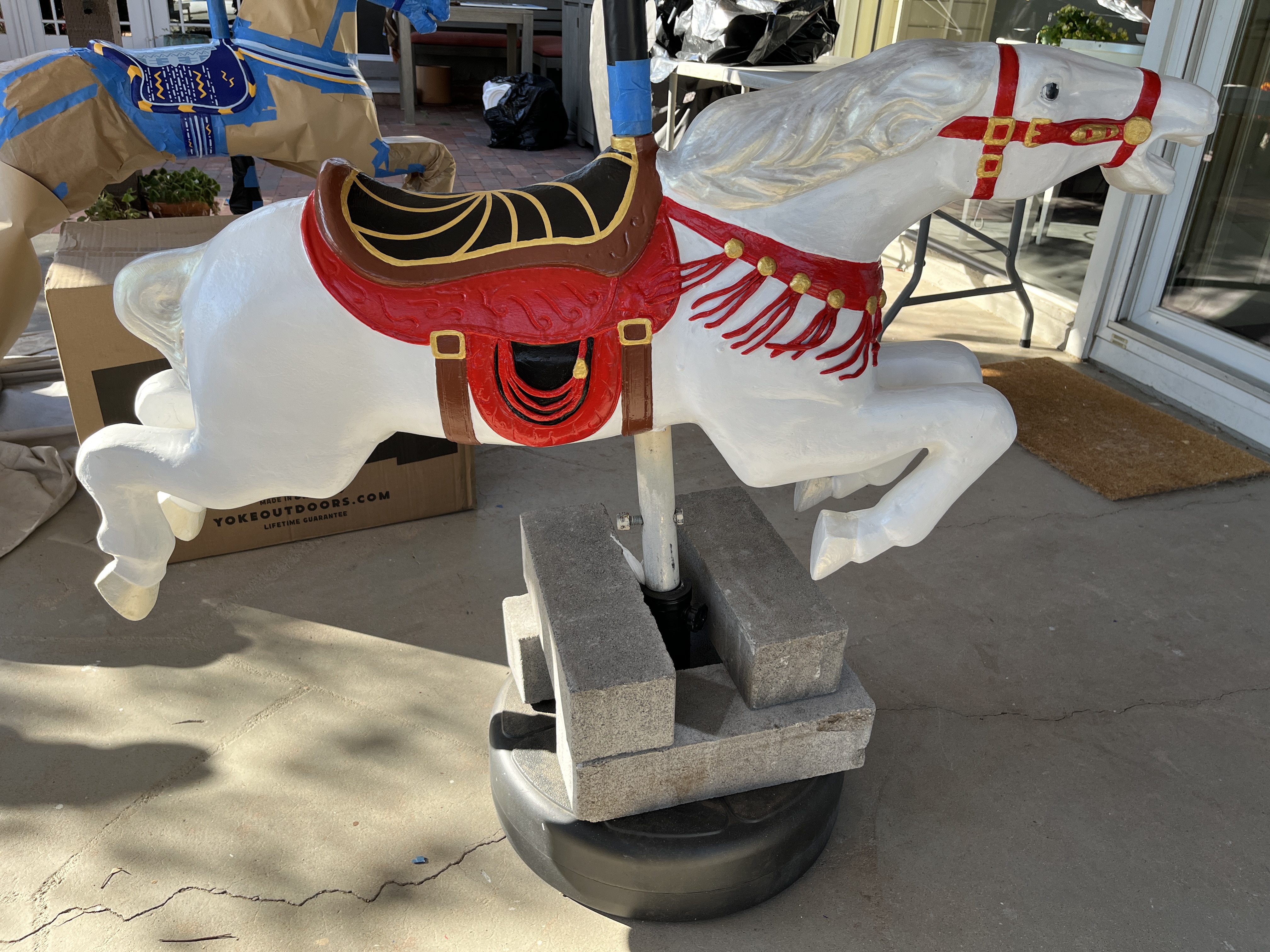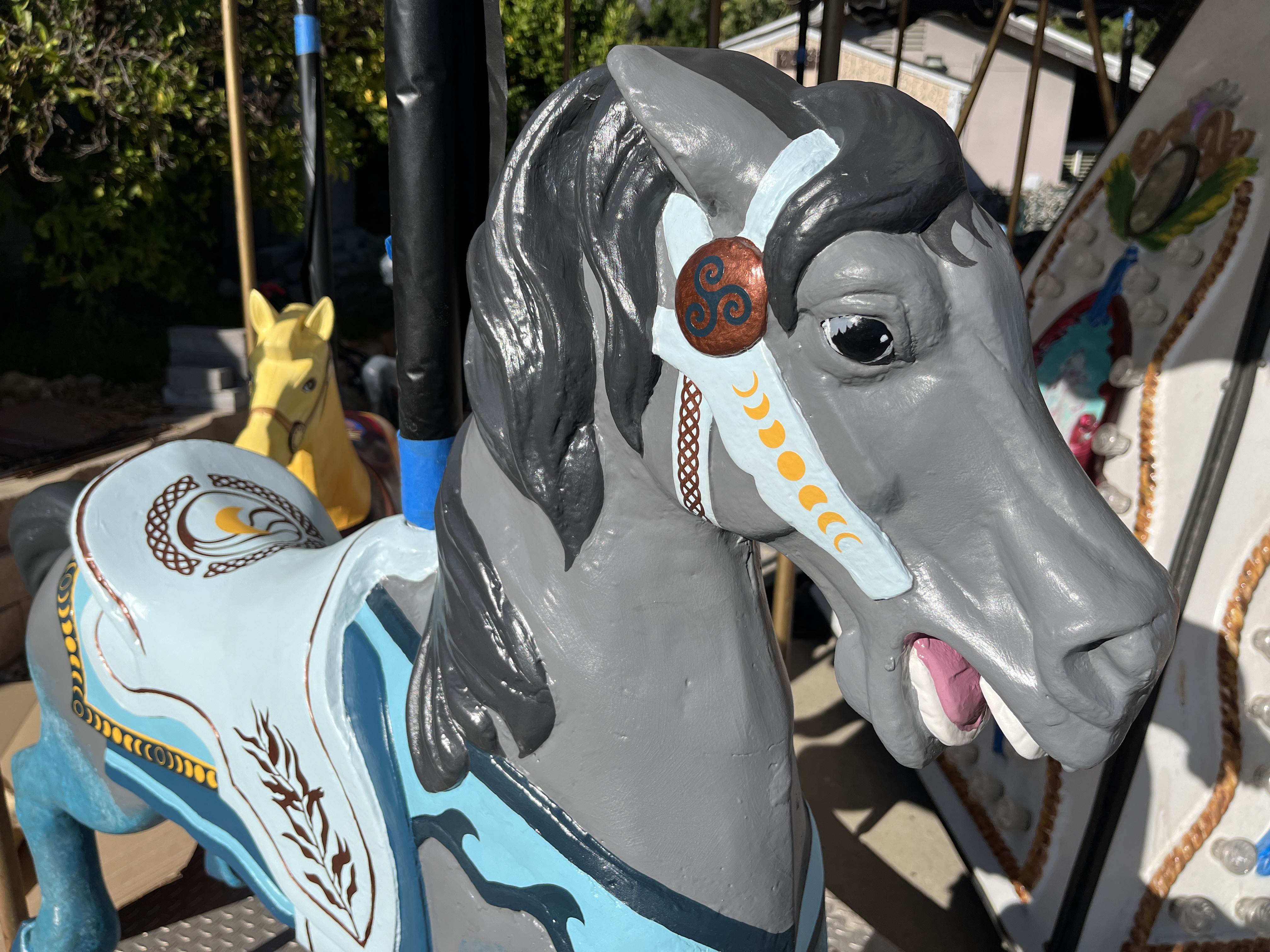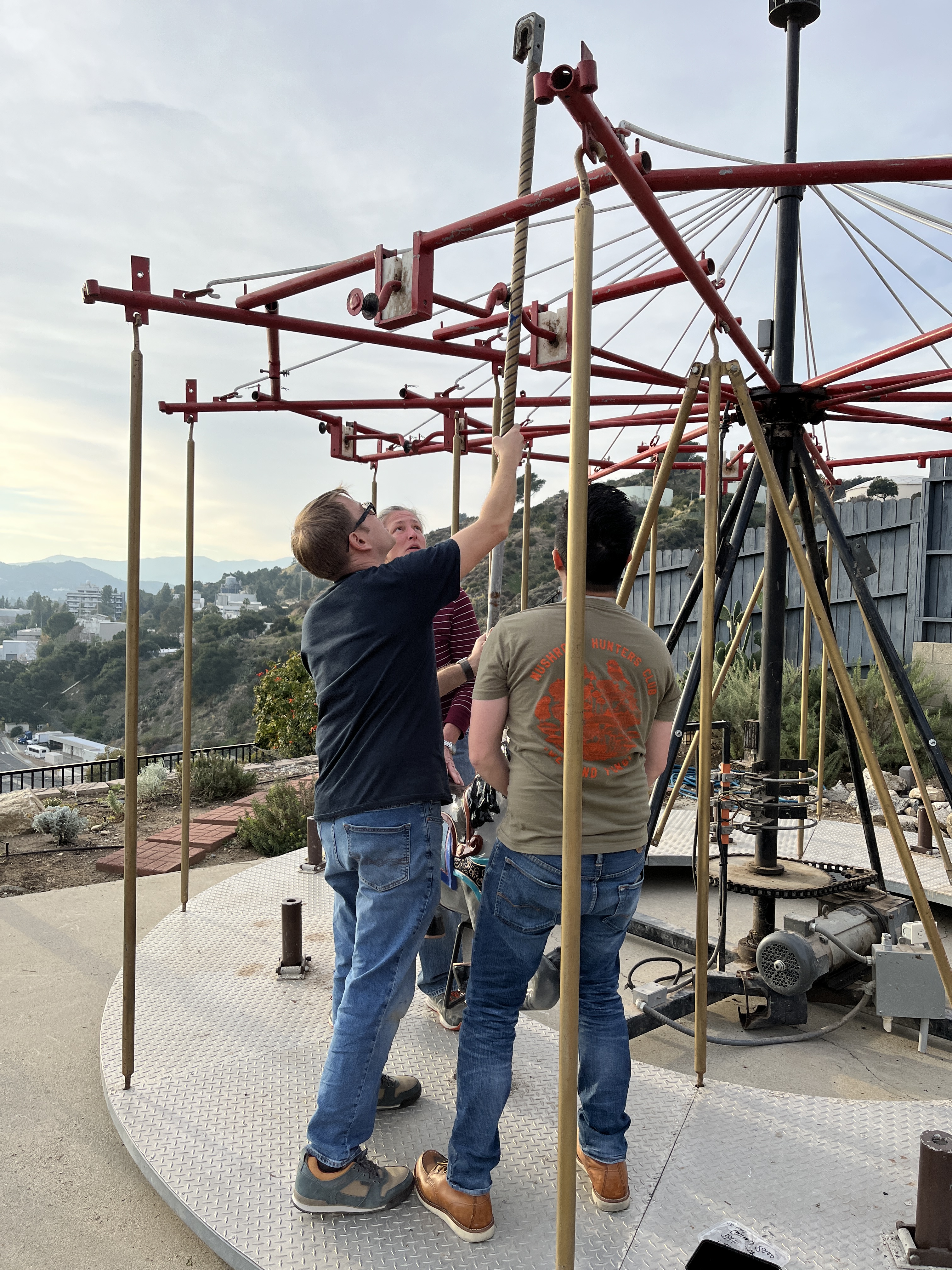 2/17/24 – The base of the carousel weighs about 2000 lbs, and since we intend to travel with it, we needed to figure out how to move it without the use of heavy equipment. Here we are testing the equipment we designed to be able to transport it. You can see a video on our Facebook page.