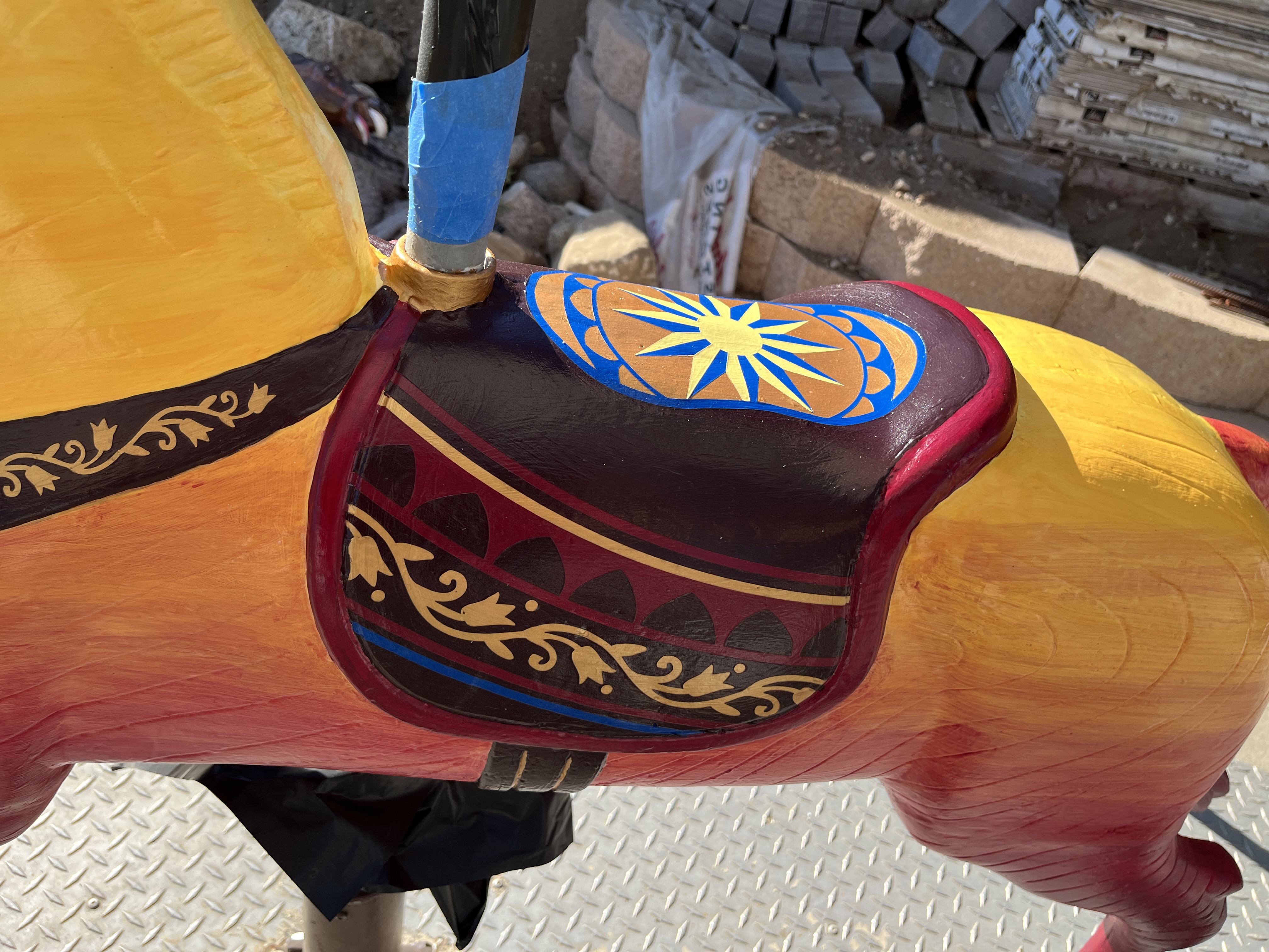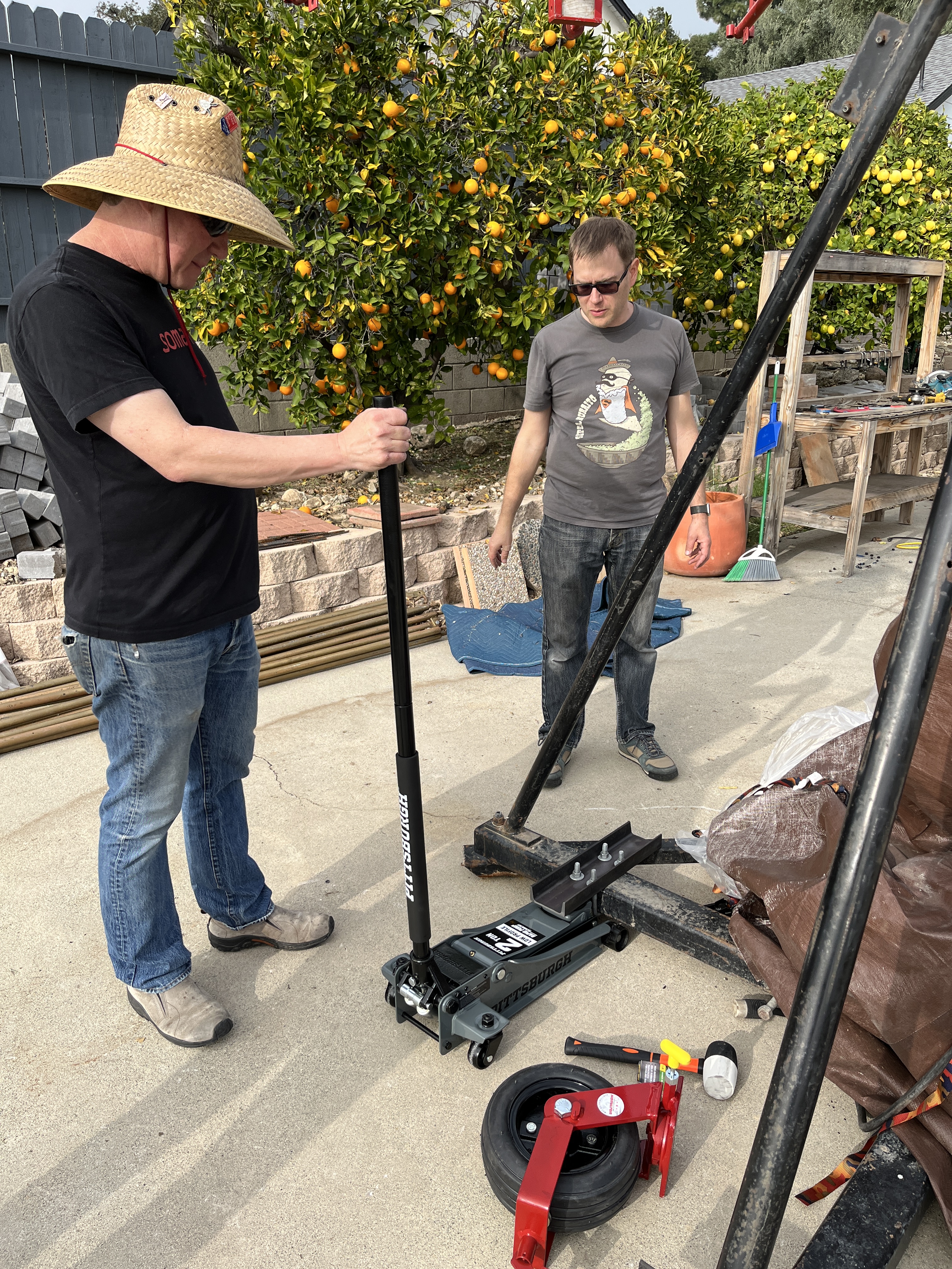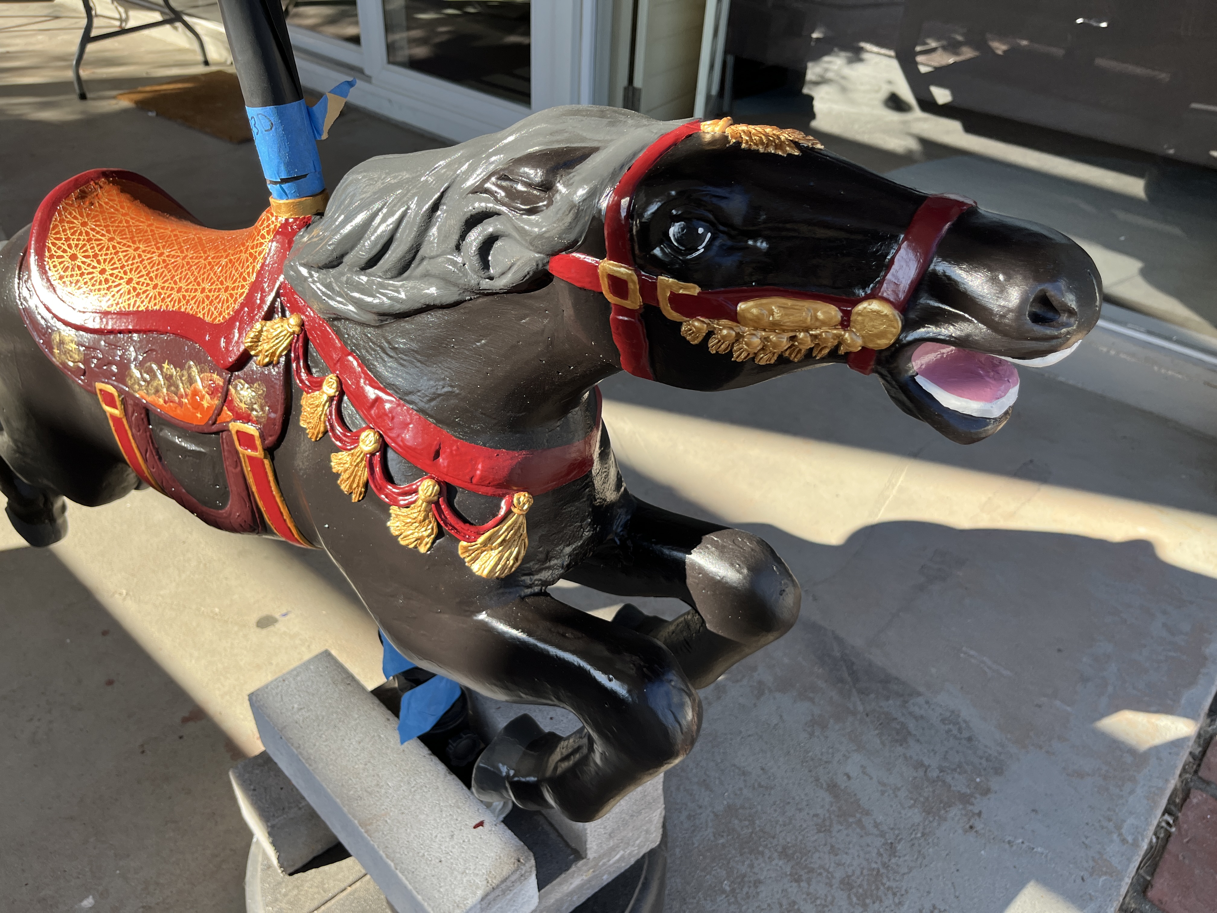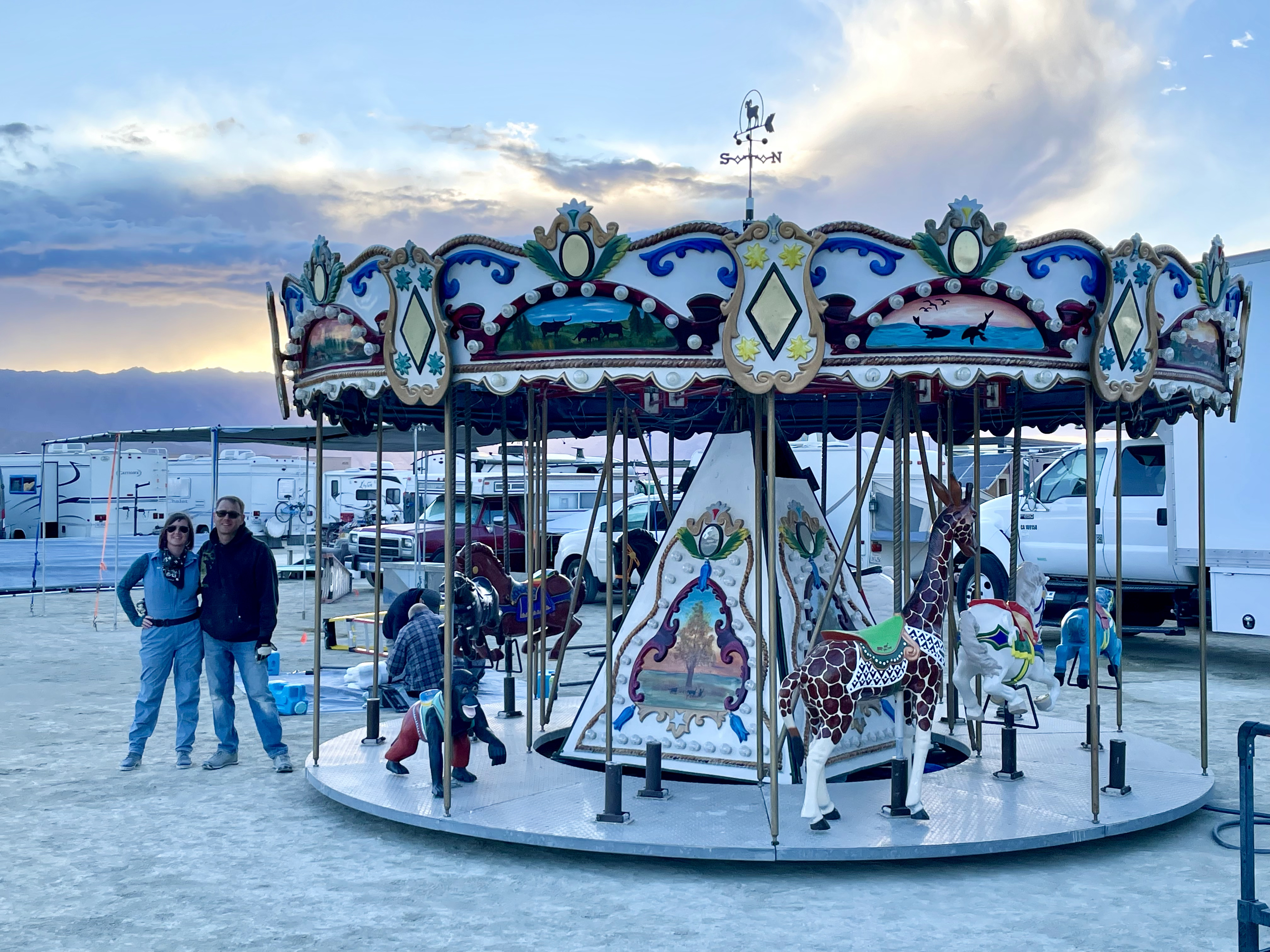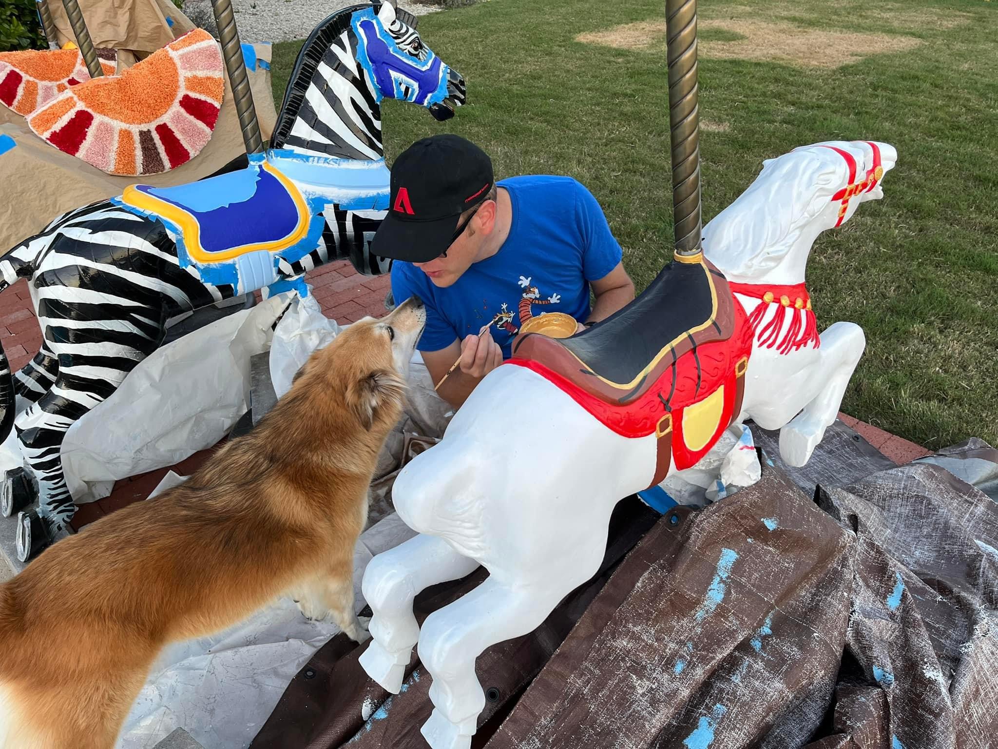 2/17/24 – The base of the carousel weighs about 2000 lbs, and since we intend to travel with it, we needed to figure out how to move it without the use of heavy equipment. Here we are testing the equipment we designed to be able to transport it. You can see a video on our Facebook page.
