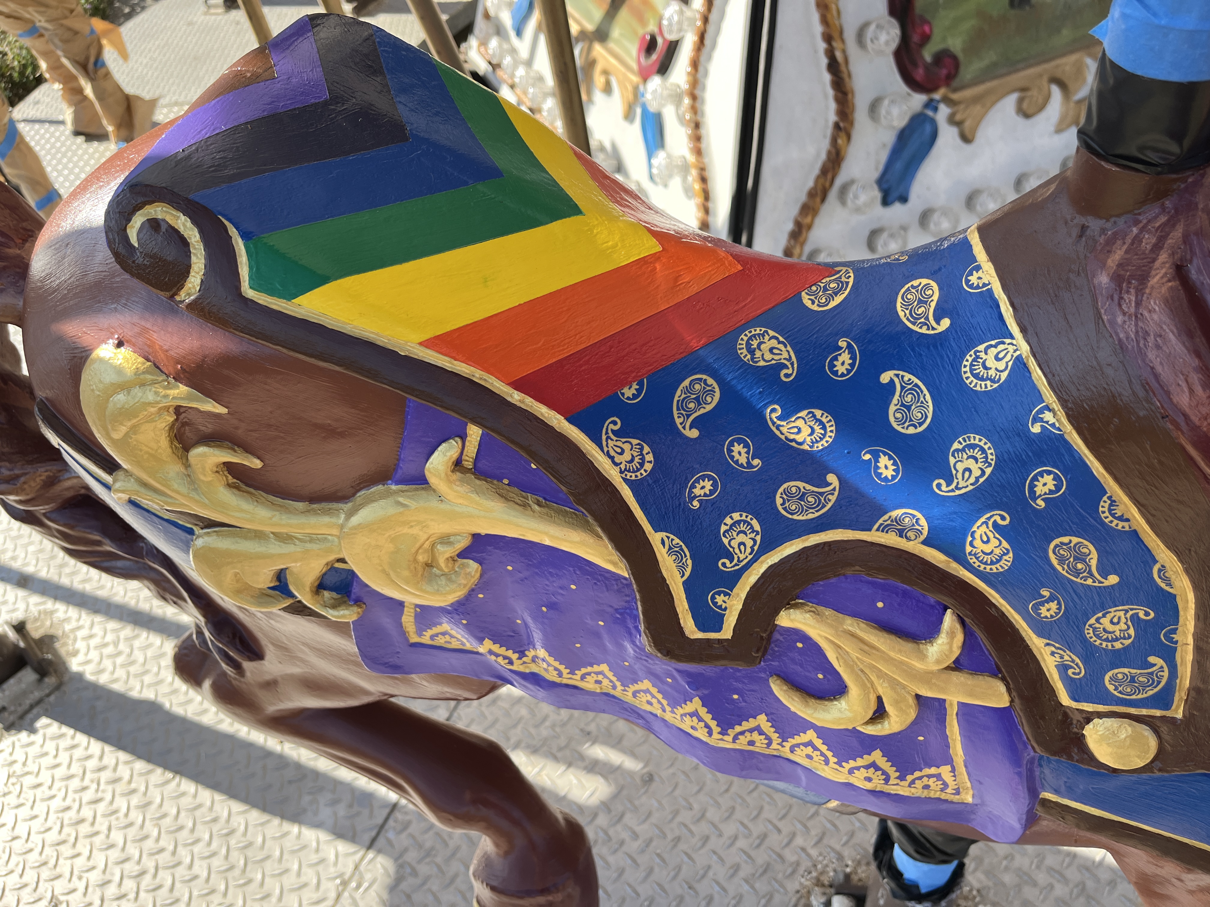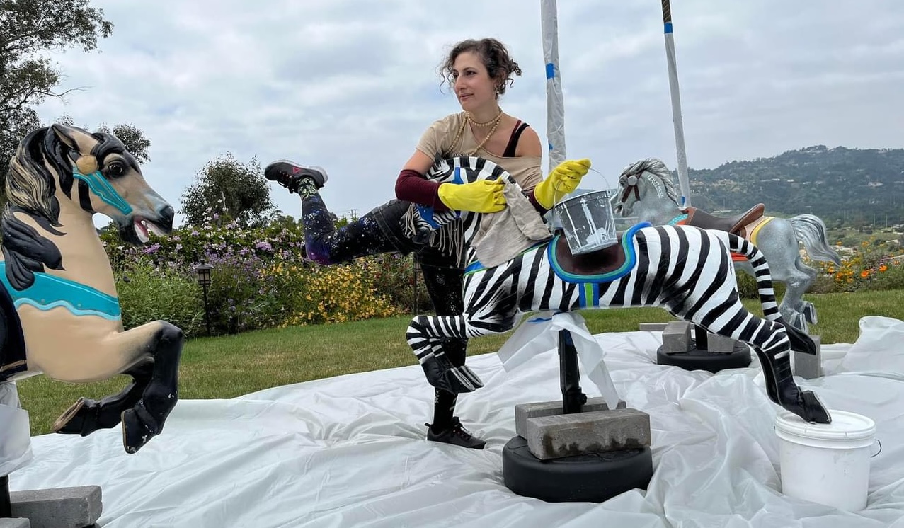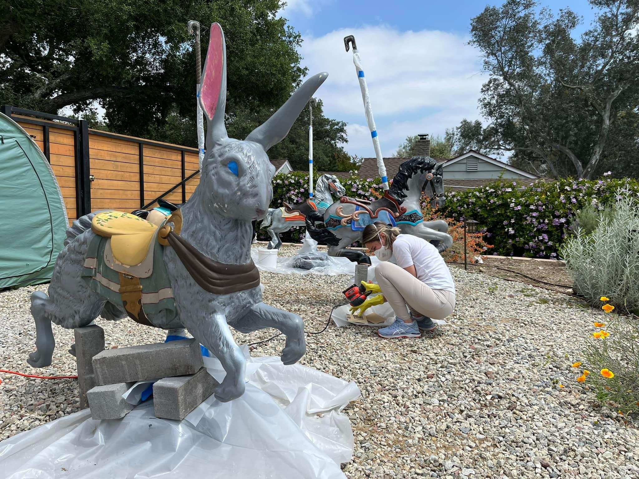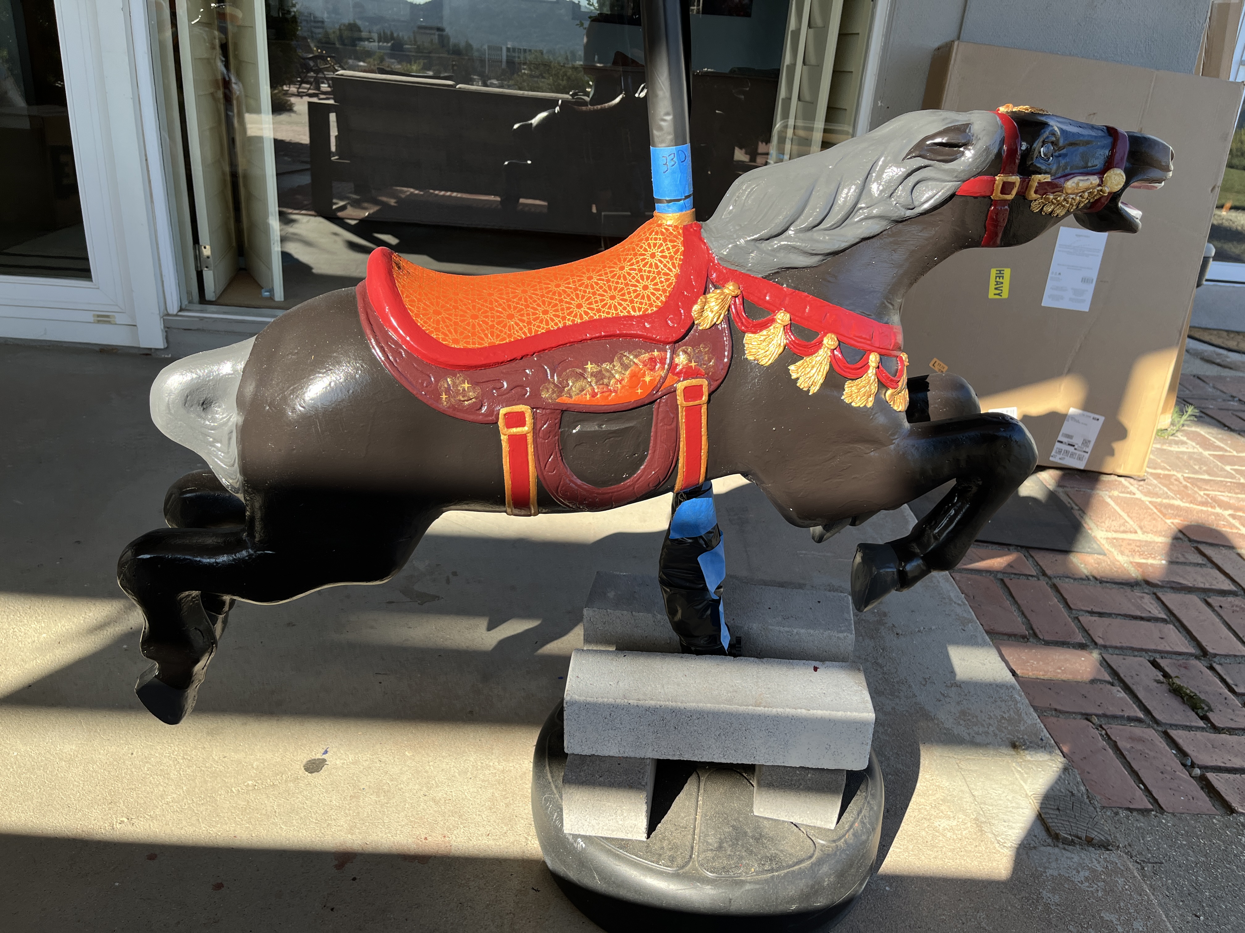 2/17/24 – The base of the carousel weighs about 2000 lbs, and since we intend to travel with it, we needed to figure out how to move it without the use of heavy equipment. Here we are testing the equipment we designed to be able to transport it. You can see a video on our Facebook page.