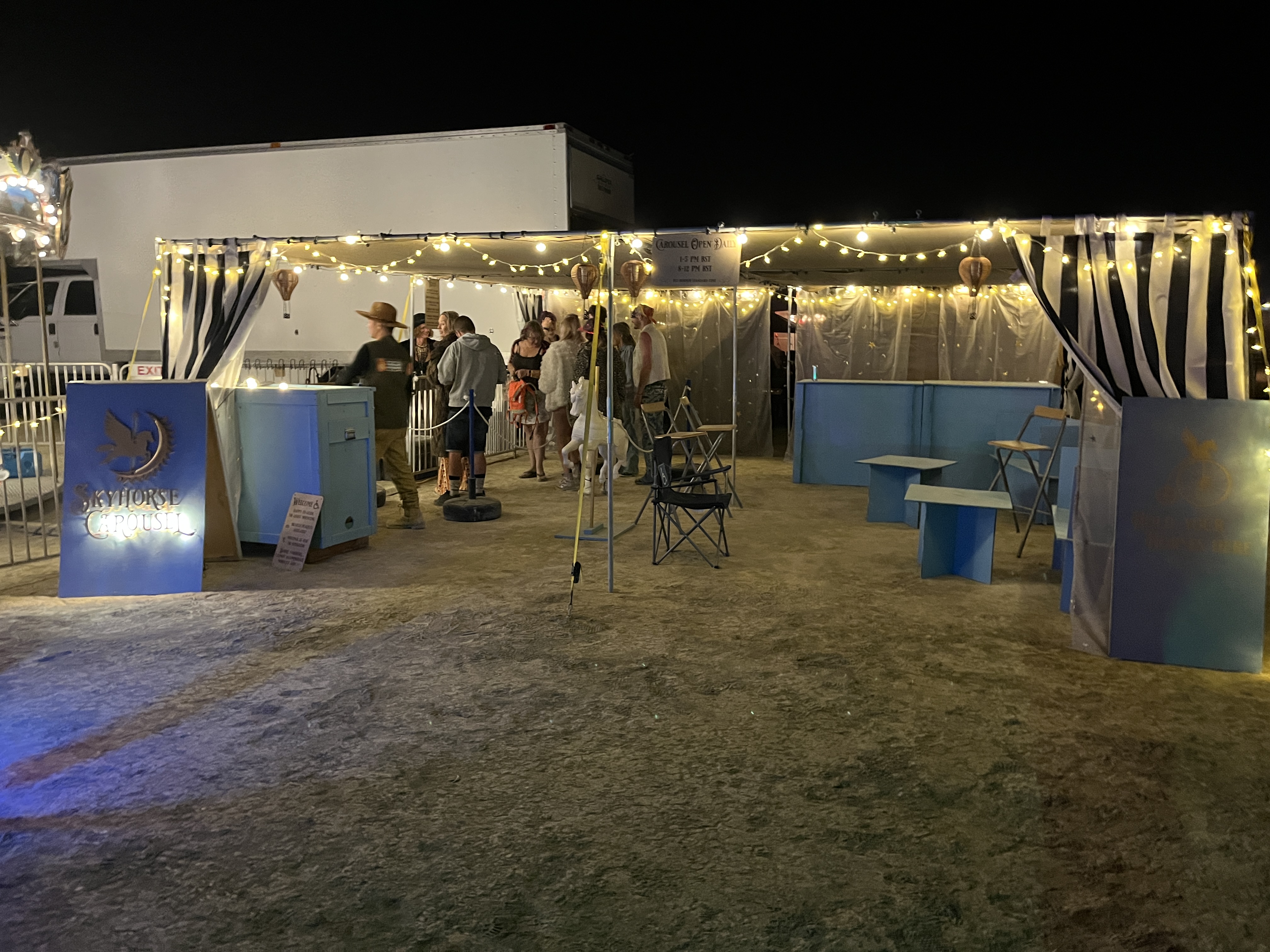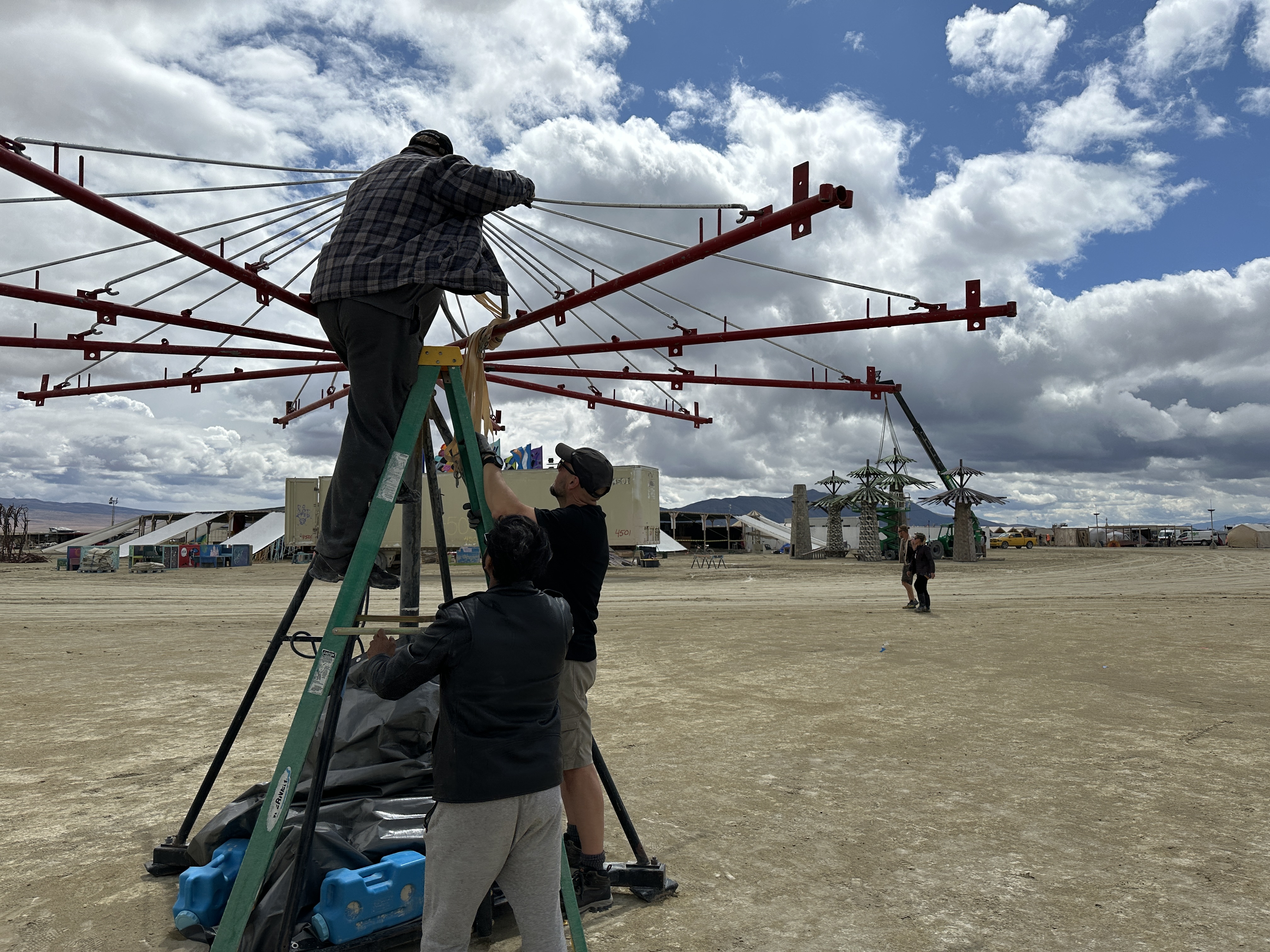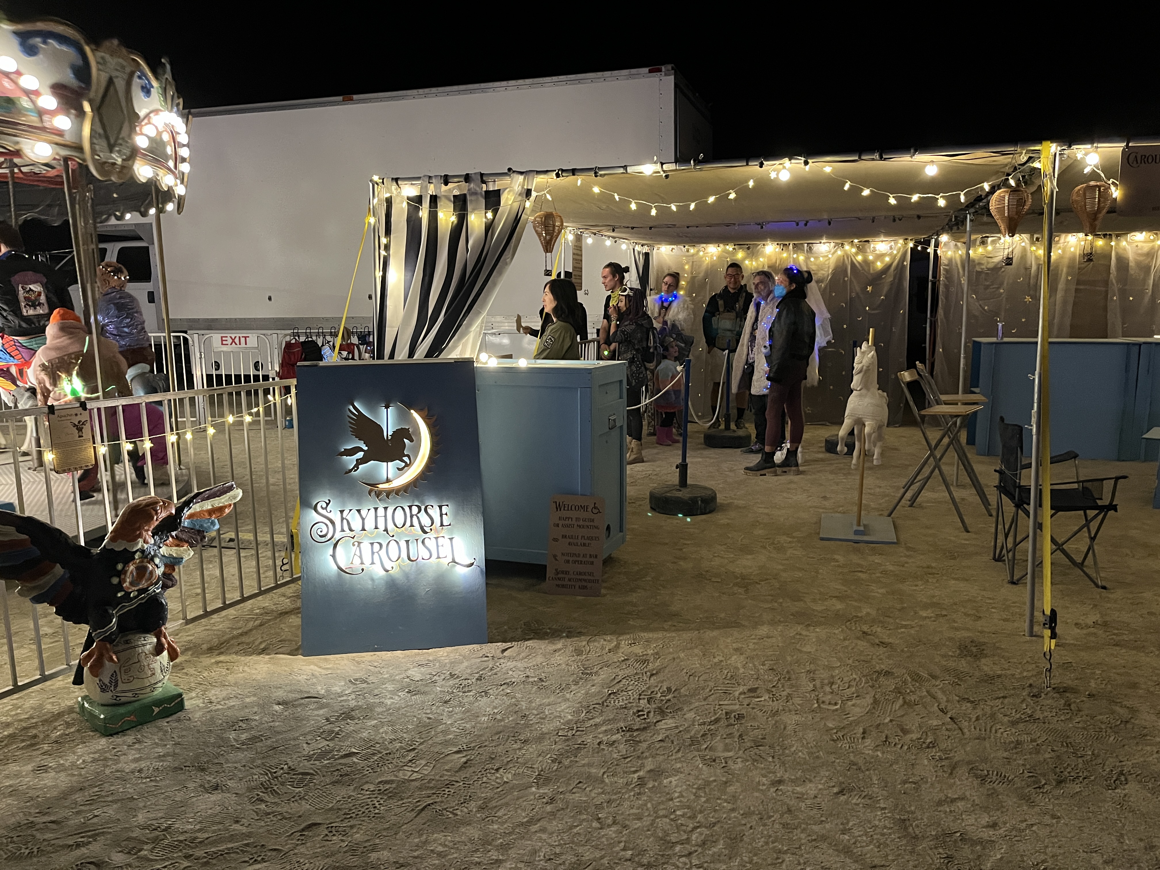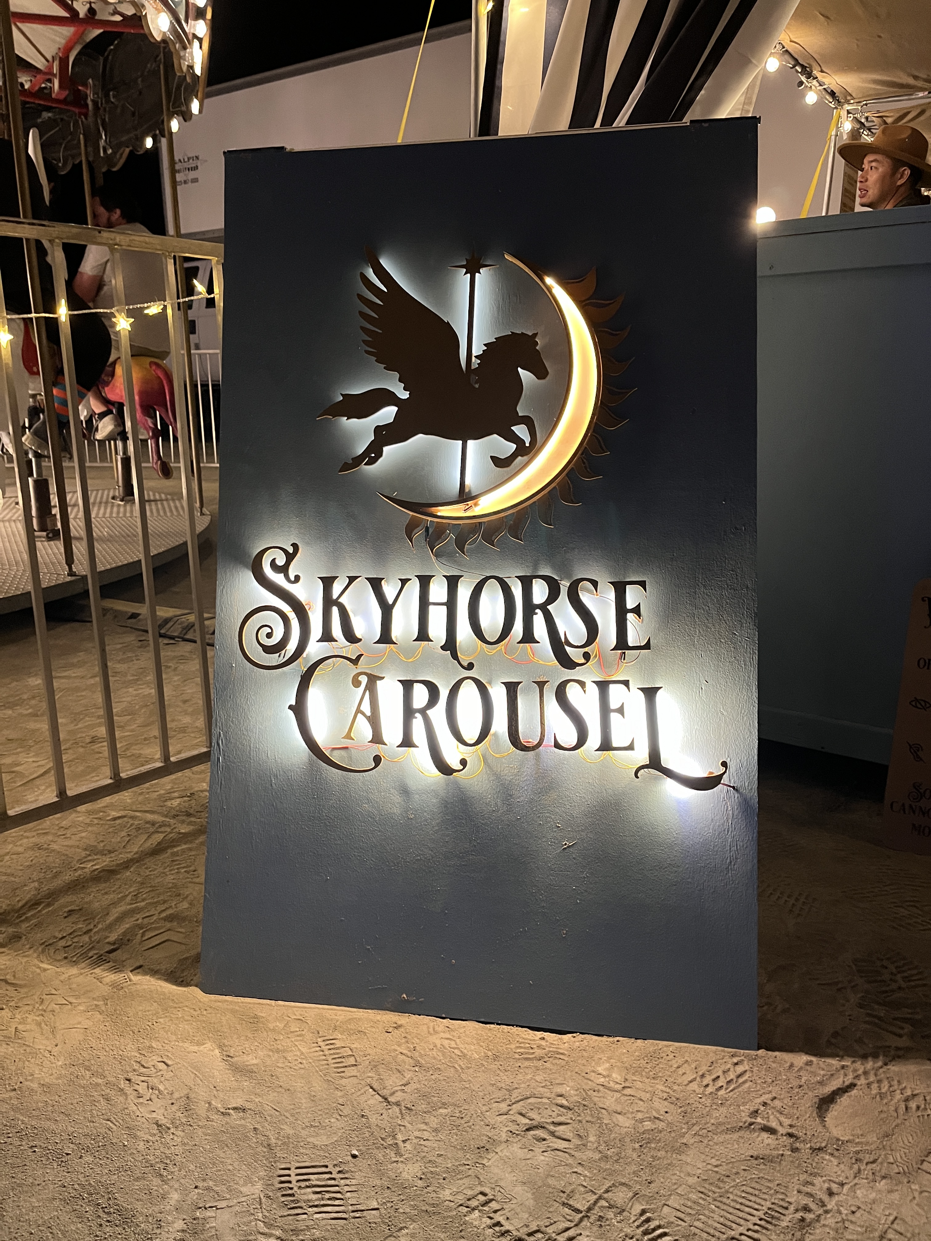 4/10/24 – Sign for camp. It lights up on the inside of the crescent so it can be the Sun during the day and Moon at night.