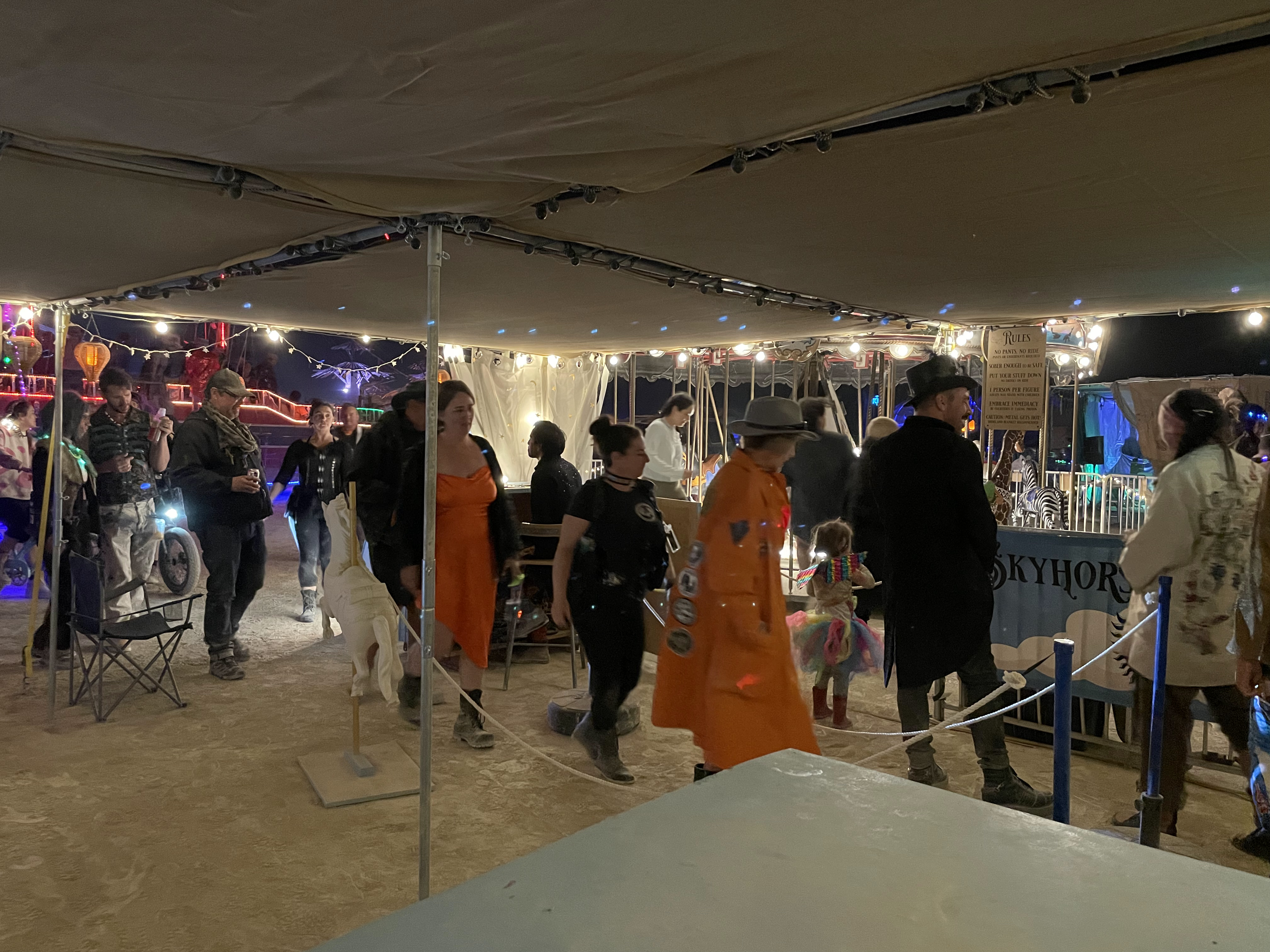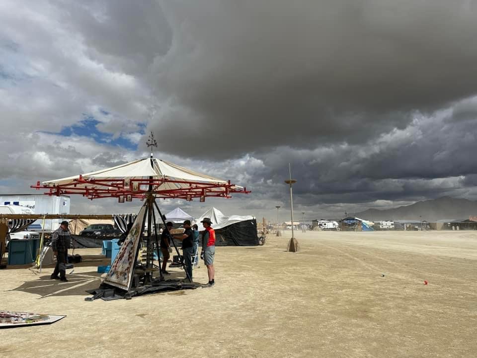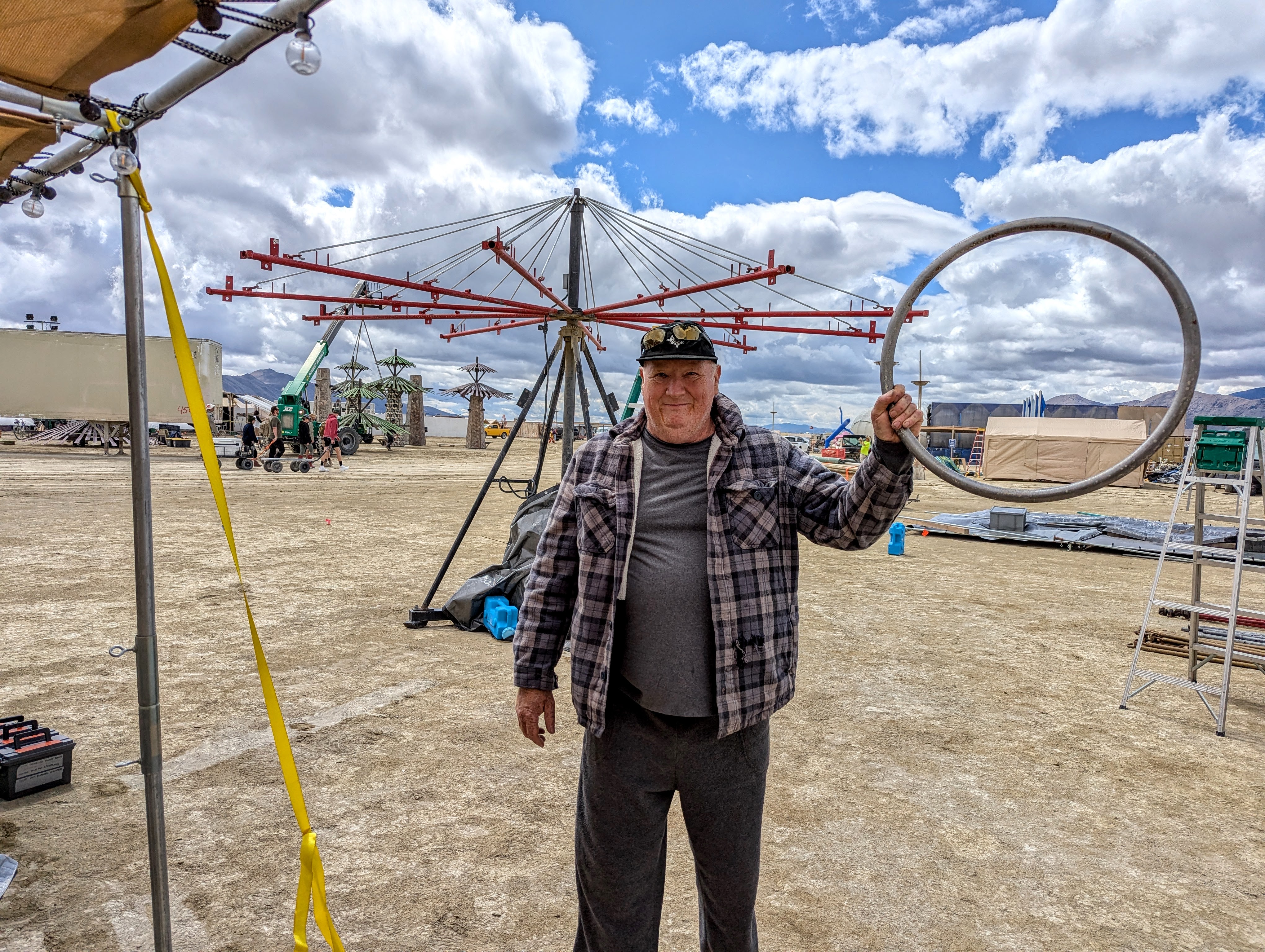 4/10/24 – Sign for camp. It lights up on the inside of the crescent so it can be the Sun during the day and Moon at night.