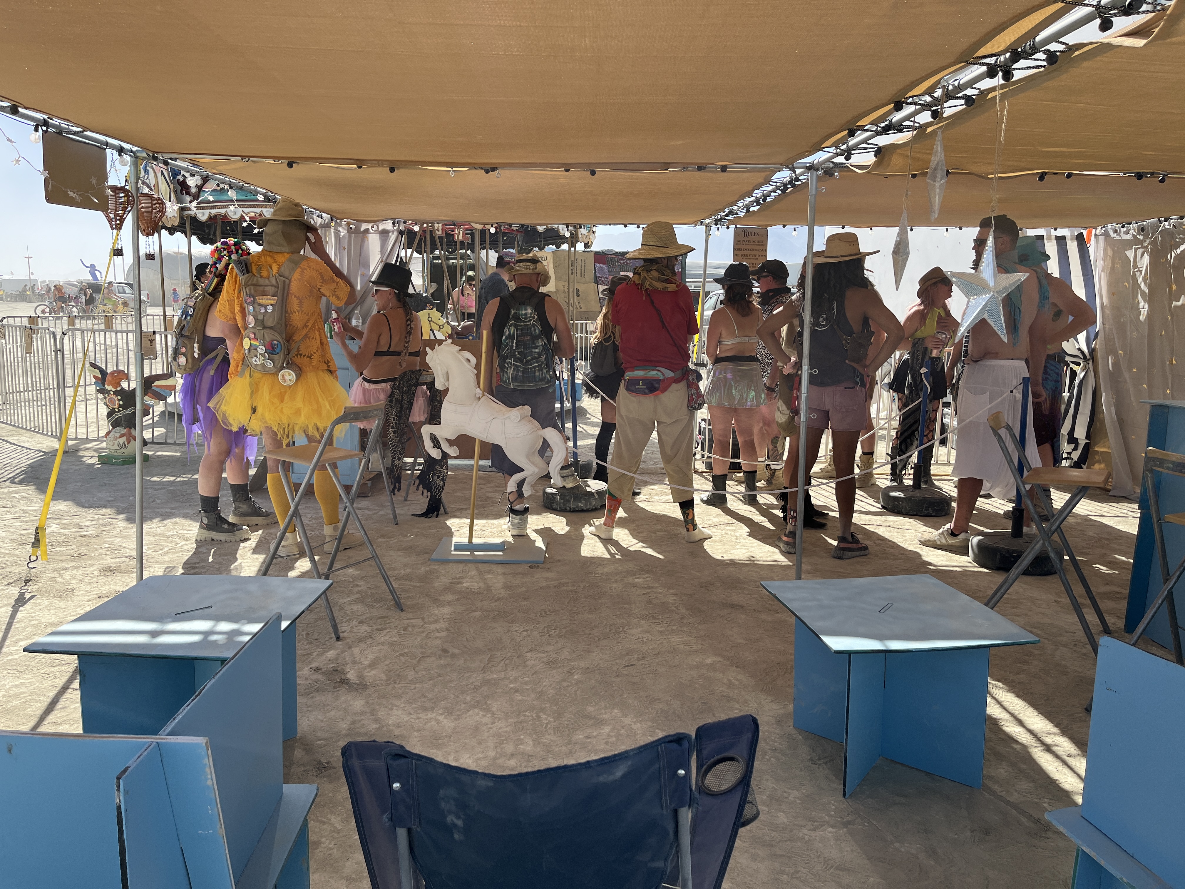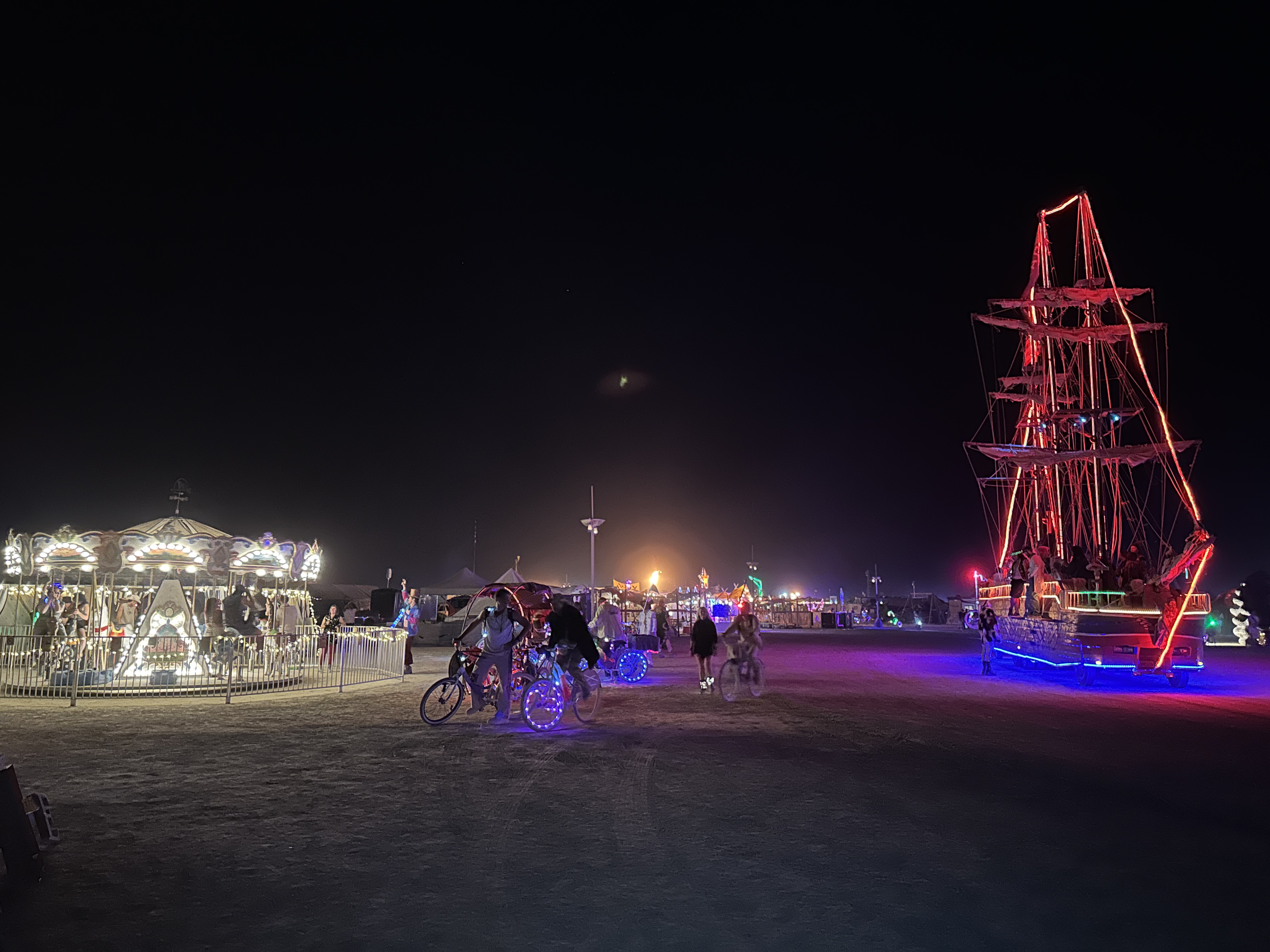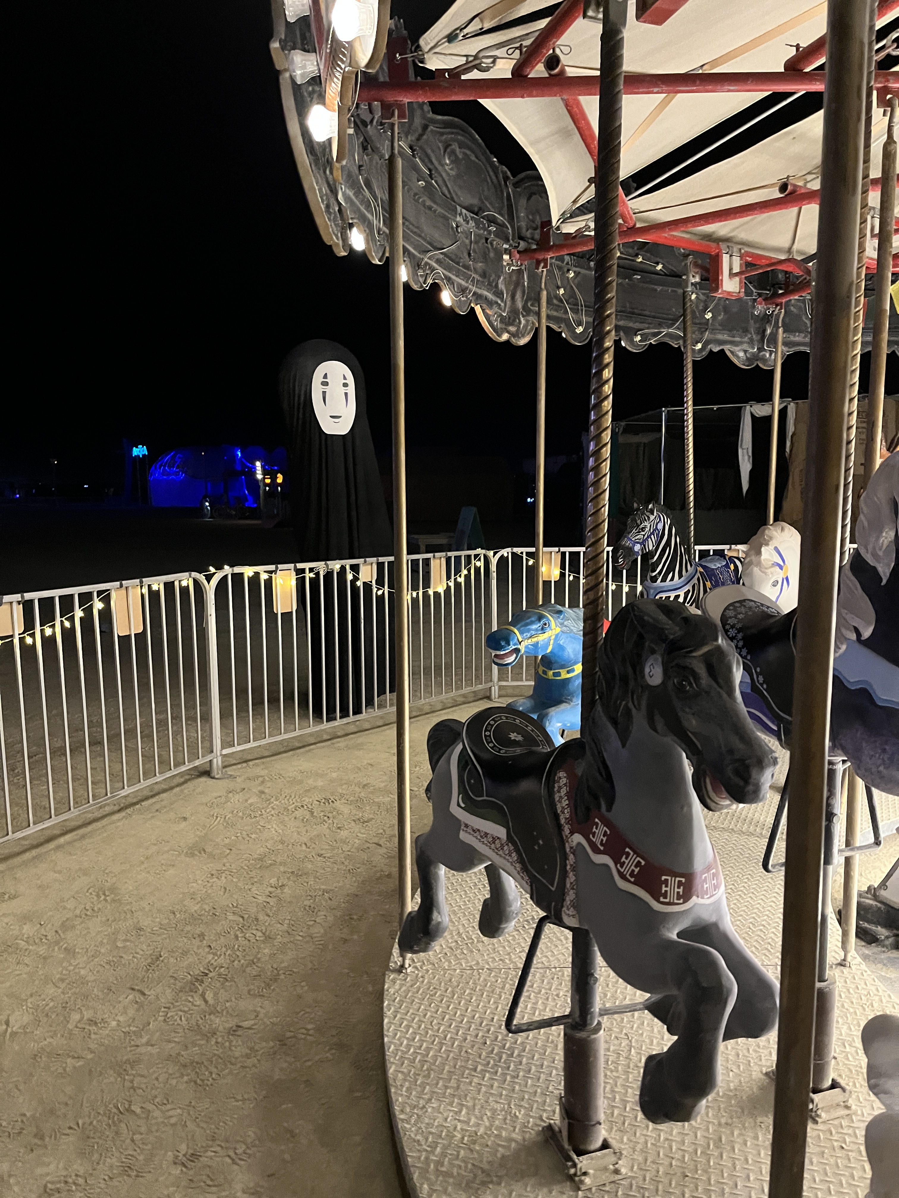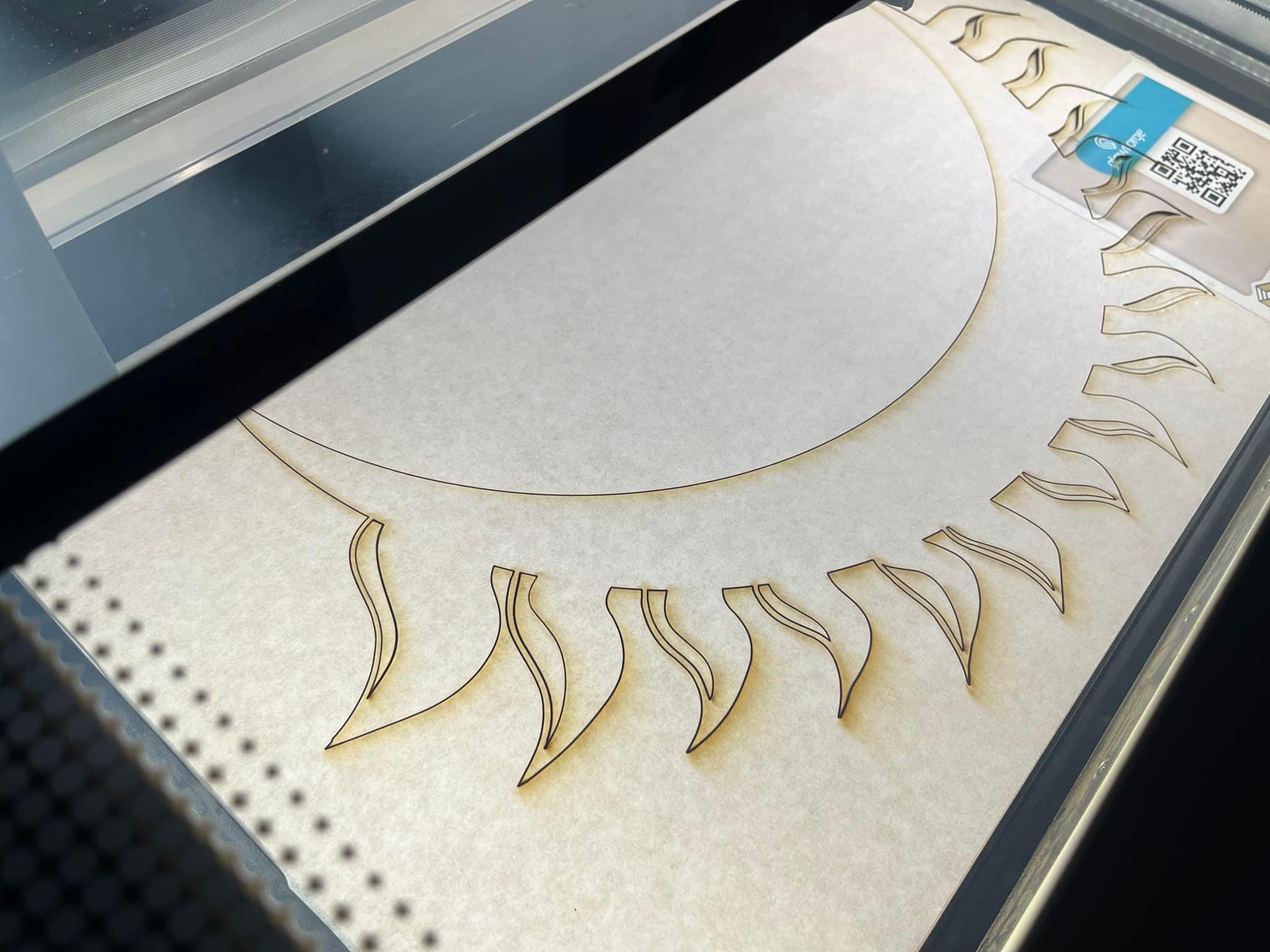 4/10/24 – Sign for camp. It lights up on the inside of the crescent so it can be the Sun during the day and Moon at night.